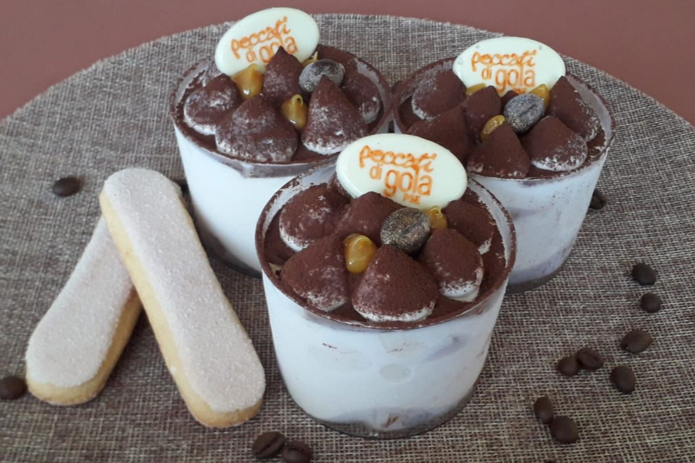 Realizzato con gli ingredienti della tradizione, savoiardi, uova, caffè, panna, cacao per spolverare.